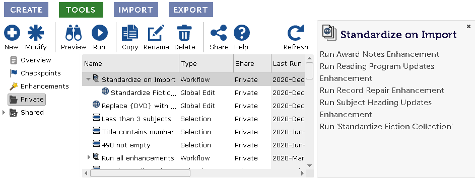 side-by-side comparison of how the Workflow will change your records when you run it. When enhancements are part of the workflow, they cannot be previewed.